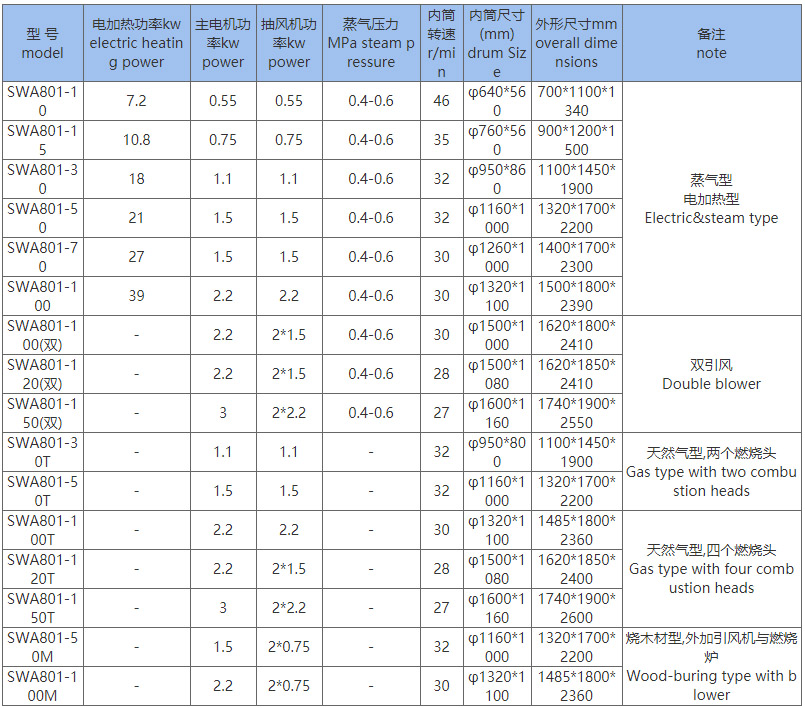 二、烘干機主要技術參數(Main Technical specifications)